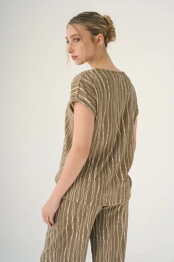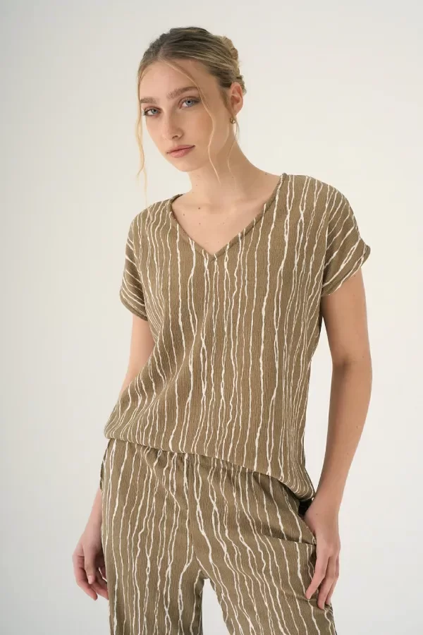 Remera de corte oversize, de bambula de punto elastizada estampado.