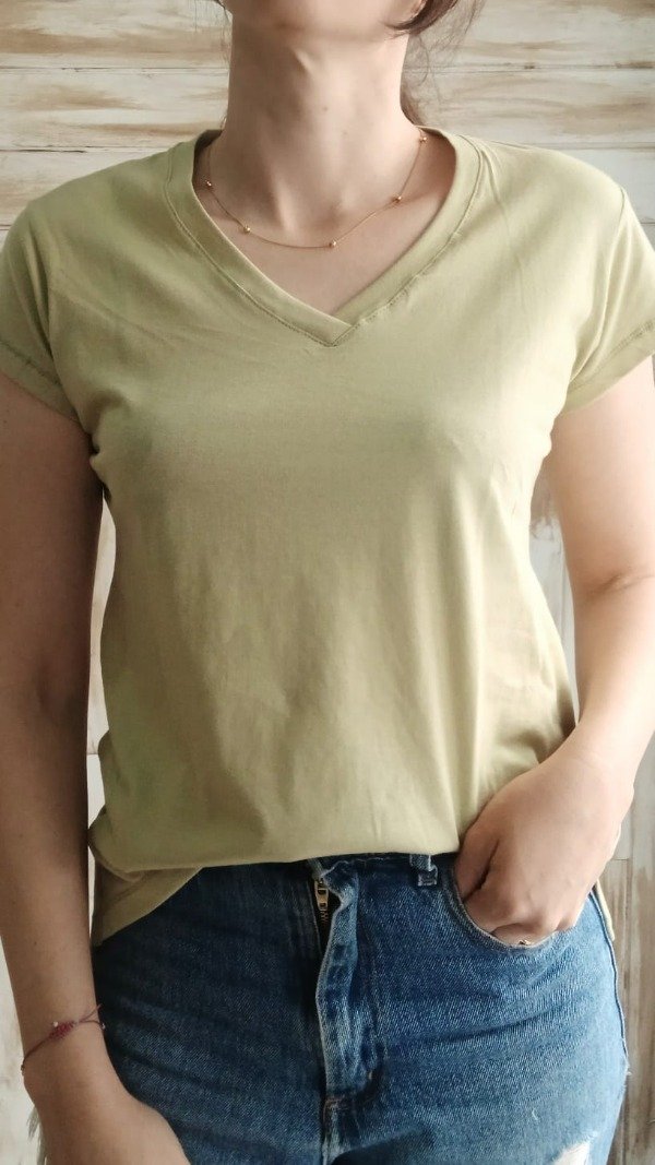 Remera 100% algodón escote V. Un clásico infaltable que podemos combinar con cualquier look.