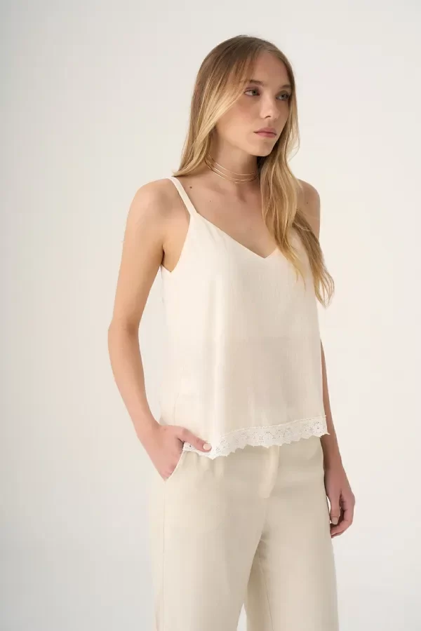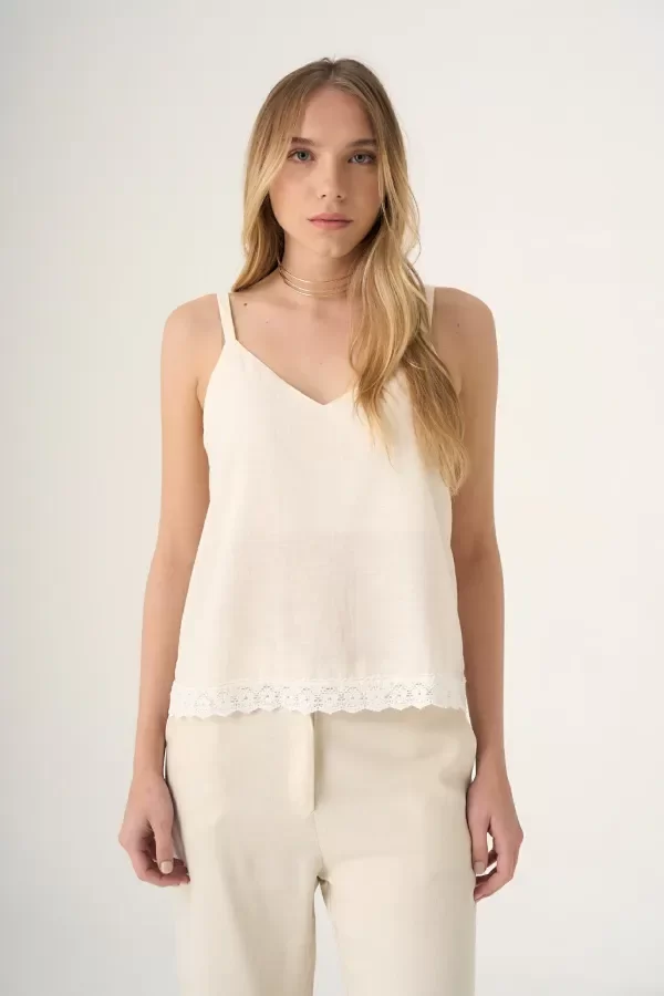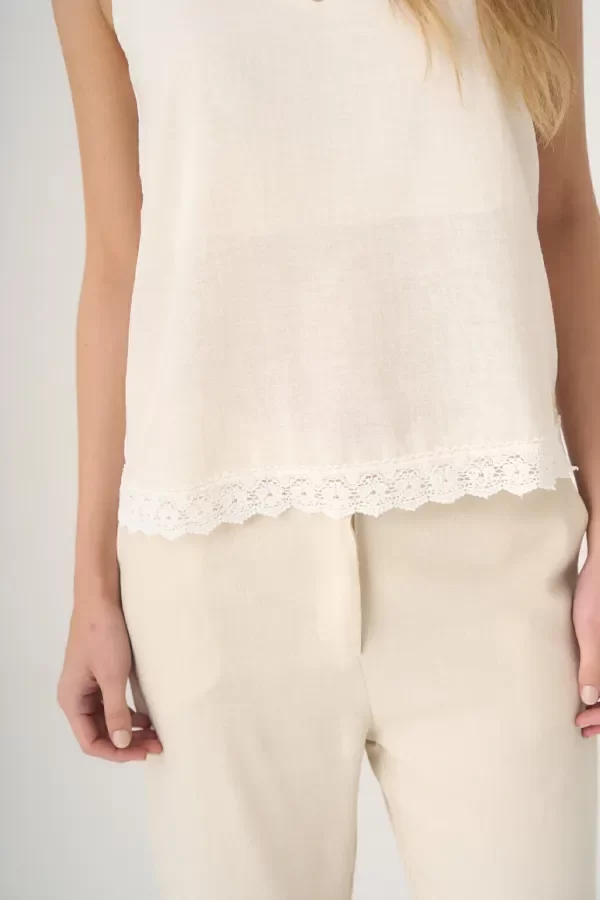 Top de lino con puntilla y forro